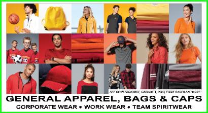 CLICK HERE: FOR OUR ONLINE CATALOGS INCLUDING: GENERAL APPAREL BAGS, HATS / CAPS NIKE CARHARTT THE NORTH FACE CORPORATE APPAREL BUSINESS APPAREL WORKWEAR TEAM SPIRITWEAR AND MORE! |